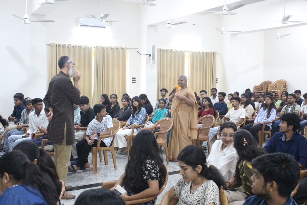 Besty Reuben, guest speaker addressing students on Importance of Communication and Networking for Global Success.